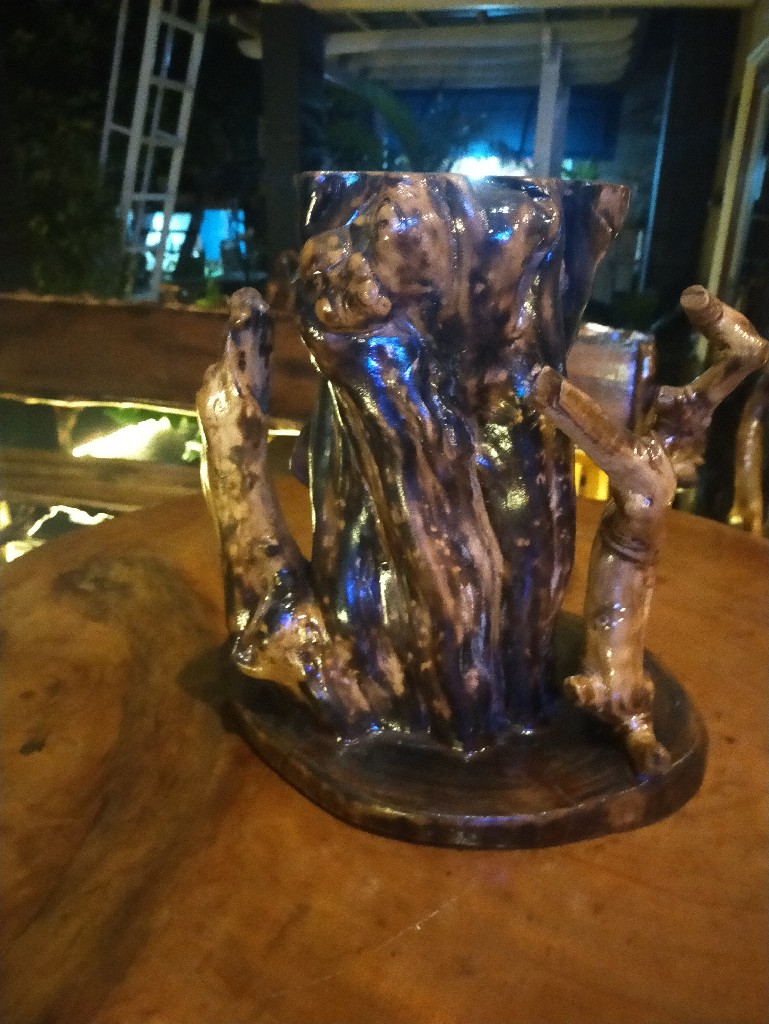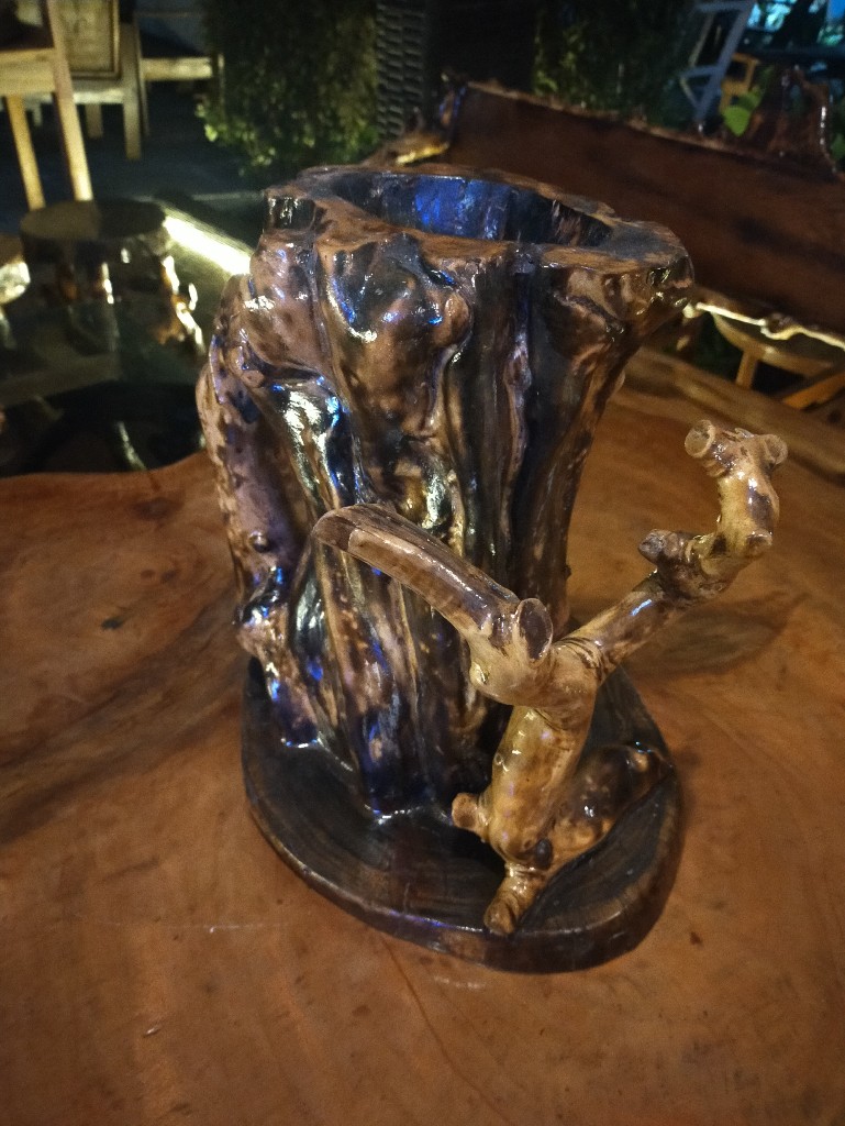 Para perokok tulen ini salah satu koleksi klasik asbak rokok. Digunakan di masa Kesultanan Palembang. Terbuat dari akar kayu kopi Pasemah dan Semendo pilihan. Tanaman khas dari Sumatra Selatan. Dikerjakan oleh tangan dingin perajin ukir Palembang.