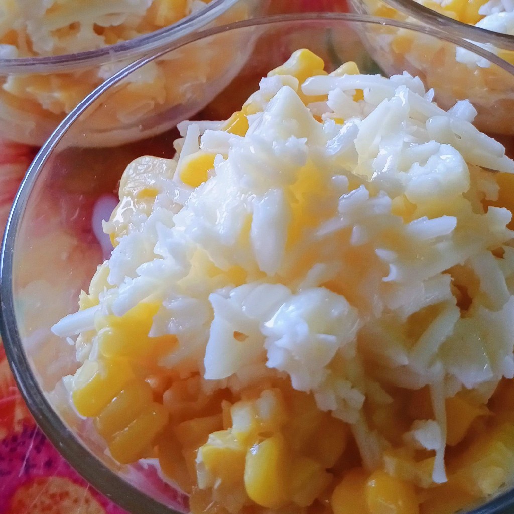 Campuran jagung manis, susu vanilla, dan keju. Rasanya lezat. Cocok dijadikan cemilan.